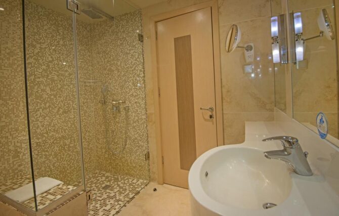 - Двухкомнатные люксы рассчитаны на проживание максимум двоих взрослых. В ванной комнате тоже есть джакузи.