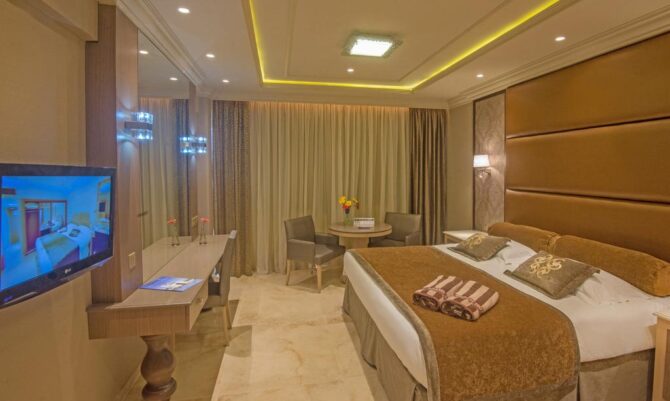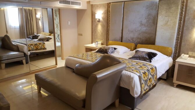Всего в комплексе представлено 395 палат разных категорий. Выгодное расположенные корпуса позволяют практически из всех номеров лицезреть Средиземное море. Все помещения оформлены в теплых тонах, располагающих к приятному отдыху. Мебель удобная, крепкая, выполненная из качественных материалов. Везде есть кондиционеры, телевизоры со спутниковым телевидением и балконы.