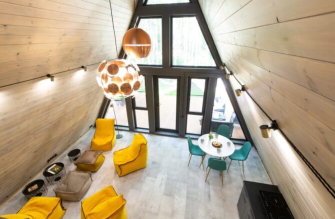 А-образные дома по внешнему виду напоминают шалаши или туристические палатки. Они построены из экологически чистых материалов, а по благоустройству не уступают комфортабельным гостиничным номерам. Эко отели часто используют этот тип архитектурного решения для создания фонда бунгало на берегу водоемов и посреди леса. Нередко внутреннее пространство разделяется на два этажа, где под треугольной крышей обустраивается балкон-терраса. Снять Афрейм дом в Подмосковье и отдохнуть в выходные дни стремятся любители природы и уединения. В обзор вошли лучшие афреймы области.