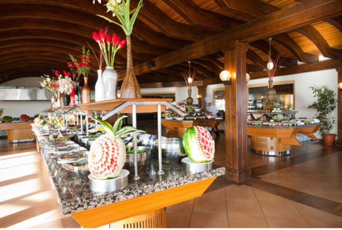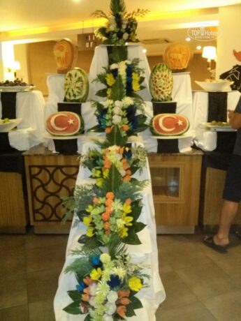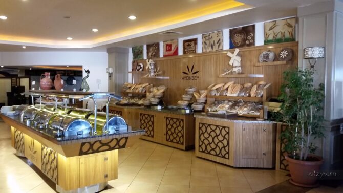 В Aydinbey Famous Resort вас удивит разнообразие блюд, которые подают в основном ресторане. Повара варят, парят, жарят, запекают много видов мяса, включая индейку и баранину. Постоянно в наличии свежие фрукты и овощи. Среди гарниров могут быть крупы, картофель, рагу. Большой выбор салатов, заправленных растительным маслом, лимонным соком, майонезом и другими соусами.