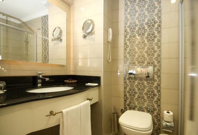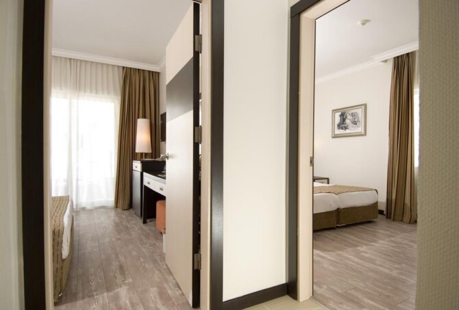Для проживания вы можете выбрать один из трех видов номеров: стандартный (26 м2), семейный с двумя отдельными спальнями (32 м2), совместный (26 м2). В общей сумме их количество составляет 242. Подходят для людей с ограниченными возможностями за счет низкой раковины и высокого туалета с поручнями.