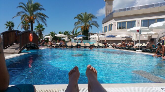 Маша, 20 лет: «Запомнилась чистая зеленая территория. Мужу не понравилось питание, но я не привередливая: брала продукты там, где не было очереди. В основном это была индейка и отварная курица, зато немного похудела. На пляже с утра чисто, но потом туристы успевают засорить все окурками, полиэтиленовыми пакетами и другим мусором, поэтому претензий к отелю нет, виноваты сами отдыхающие. Рядом с отелем есть аптека, купили много хороших лекарств намного дешевле, чем у нас».
