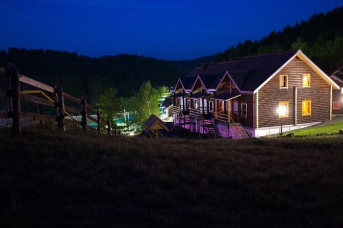 Домики равномерно расположены на всей огромной территории, соседи не будут нарушать ваше спокойствие. Отдыхайте, наслаждайтесь тишиной, дышите воздухом хвойного леса. В летнее время возможны неспешные конные прогулки для взрослых, а маленькие путешественники могут, для начала, подружиться с этими умными животными.