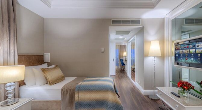 Отдых в Турции в отеле Alva Donna Exclusive Hotel & Spa неразрывно связан с песчаными обустроенными пляжами, теплым морем, отличным сервисом, соответствующим европейским стандартам; комфортными номерами, в которых имеется все, что необходимо современному человеку для проживания и досуга, широким разнообразием спа-услуг; огромным количеством достопримечательных мест, связанных с древним прошлым этой страны; хорошо развитой туристической и транспортной инфраструктурой.