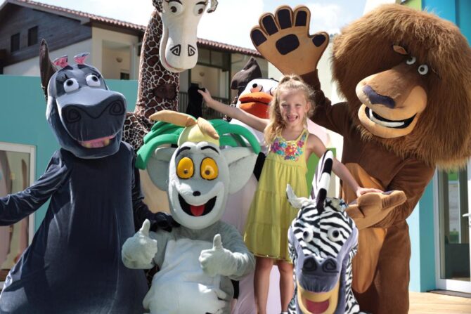 В местном кинотеатре показывают детские фильмы, мультики в утреннее и дневное время. В небольшом зоопарке дети могут посмотреть необычных животных. На площадках есть разнообразные горки, турники, лестницы, брусья, кольца – все, что необходимо для активных малышей. В бассейнах есть отведенные «лягушатники», где глубина небольшая, и есть горки, грибки и прочие развлечения. Чтобы не потерять связь или следить за ребенком, оставаясь в другой комнате, предоставляется радионяня. Ей можно пользоваться на всей территории курорта, но расстояние ее ограничено.