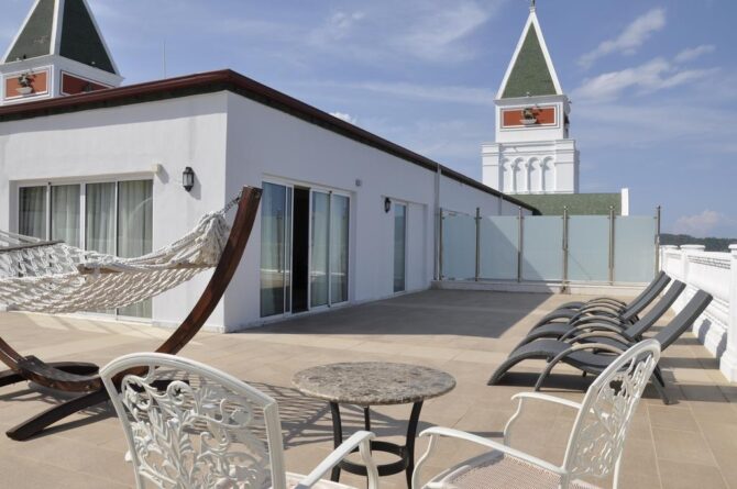 В Трипл Делюкс номерах – две спальни, проживание рассчитано на троих человек, или четырех с маленьким ребеночком. 5 семейных палат этой же категории тоже состоят из двух спален, разделенных дверьми, но рассчитаны на проживание четырех взрослых человек. По площади они составляют, в общем, 70 м2. Сьют апартаменты включают спальню, кабинет, гостиную с американской кухней, ванную с джакузи, гардероб и открытую террасу. Две палаты категории Мажор Сьют содержат все то же самое, только спален и ванных комнат две. Одна только терраса занимает 75 квадратных метров.