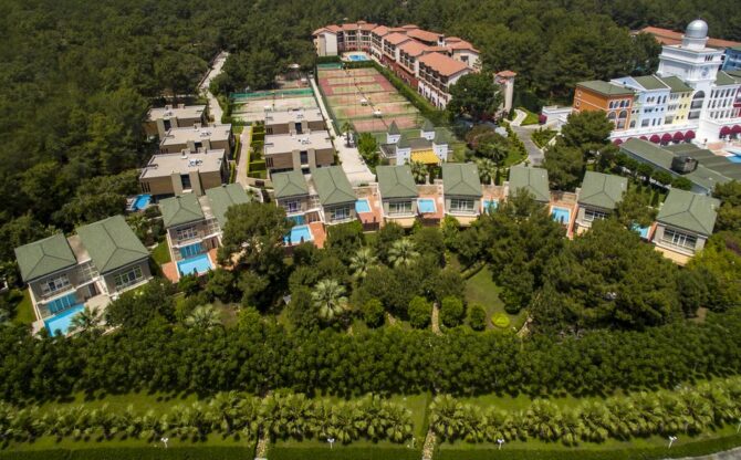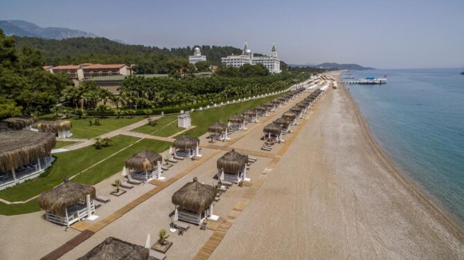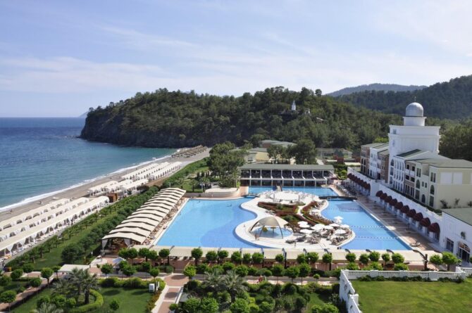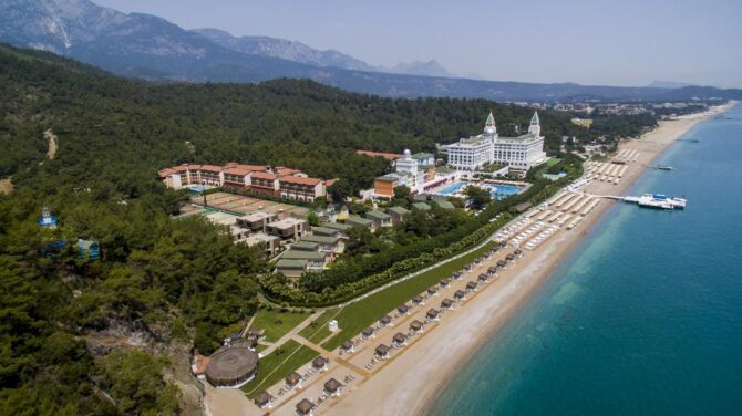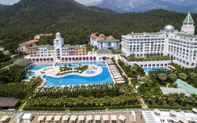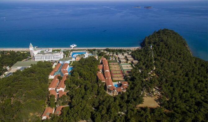 Владения комплекса довольно большие, составляют 163 000 метров квадратных. Все помещения выполнены в светлом роскошном дизайне с узорами в турецком стиле. Персонал высококвалифицированный, как и полагается пятизвездочному заведению, разговаривает на семи языках мира. Среди работников можно отыскать русских девушек, которые помогут преодолеть языковой барьер и с комфортом провести здесь время.