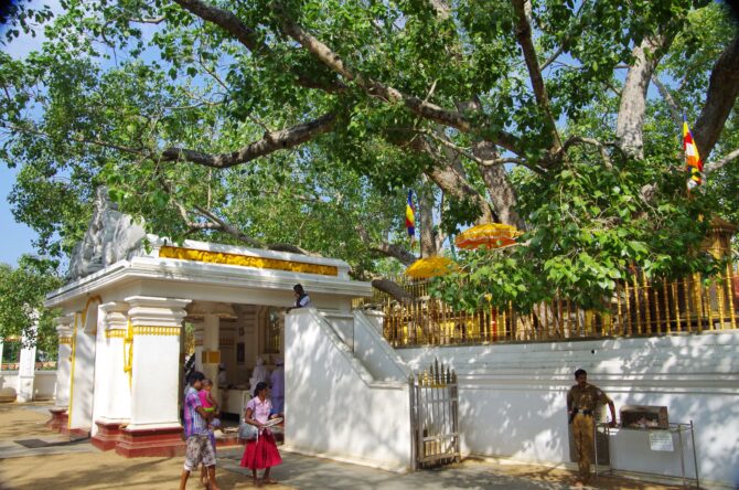 Дерево Бодхи в Анурадхапуре было посажено в 3-м веке до нашей эры. Семена привезла дочь индийского правителя Сангамитта. Паломники Бодхи вырастили Священный фикус (другое название – Священная фига) и сохраняют его до сих пор. Его ростки и семена распространились по всему острову. Врачи-аюрведисты используют листья и плоды Бодхи для приготовления лекарств. Буддисты видят в дереве не только религиозный, но и сакральный смысл. В нем сосредоточены все сферы мироздания – подземный мир (ад), земная жизнь и небесный рай. Вход к достопримечательности платный – 200 рупий.
