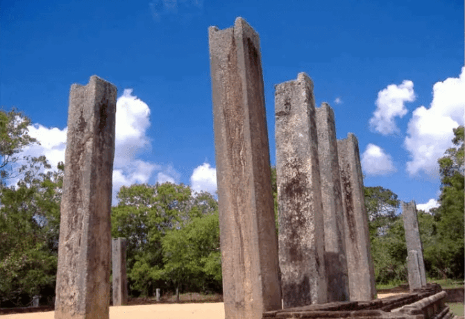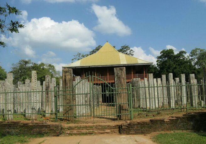Руины Бронзового Дворца Ловамахапайя находятся в районе Старого города. Это был первый дворец, построенный царем Деванампия Тиссой по просьбе монаха Махинды. До наших дней сохранились лишь колонны, оставшиеся от величественного строения, но даже они свидетельствуют о масштабах всего комплекса. Гид обязательно расскажет историю о былых временах, когда Анурадхапура была столицей острова. Бронзовый дворец возводился в течение двухсот лет. Это было здание состояло из 9 этажей и возвышалось над землей на 47 метров.
