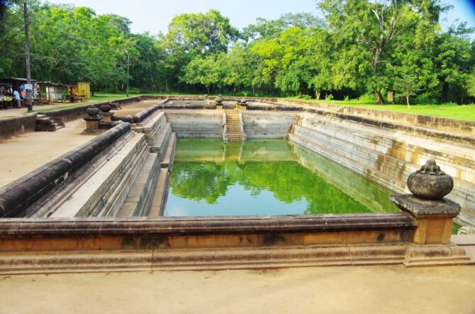 Два одинаково оформленных бассейна являются древнейшей системой очистки воды. Водоемы не совсем близнецы, так имеют разную длину (28 и 40 метров соответственно). Они были построены с 575 по 608 годы во времена правления короля Аггабодхи I и были предназначены для купания и омовений. Резервуары хорошо сохранились и представляют интерес с техническо-гидрологической точки зрения. Вода, поступая в бассейны, проходит через ряд углублений. В них оседает грязь и крупные частицы. Водоемы связаны между собой трубопроводом.