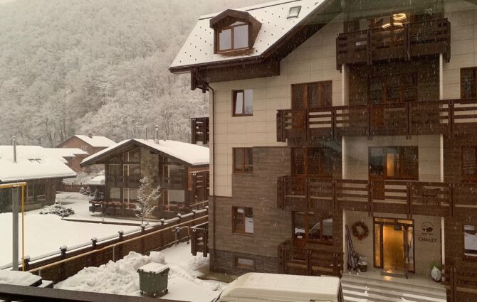 Апарт-отель распахнул свои двери в 2014 году. Он изначально задумывался, как альтернатива знаменитым альпийским отелям. Не даром курорт Роза Хутор называют Русской Швейцарией. Чтобы соответствовать европейскому уровню, владельцы обустроили у подножия горы настоящее шале. И внешний, и внутренний вид напоминает традиционные альпийские постройки. В интерьере использовано натуральное дерево, камень и качественный текстиль. Экологическая чистота строительных и отделочных материалов еще раз подчеркнула ответственность владельцев за сохранность окружающей природы и заботу о своих гостях.