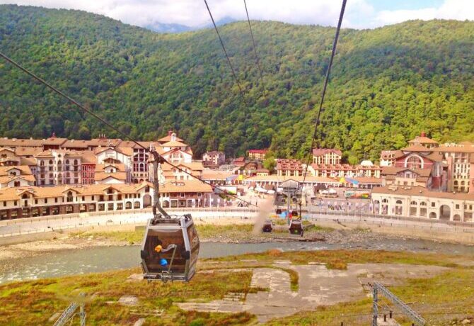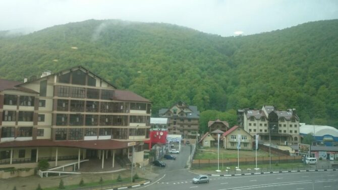Чуть подальше, в полутора километрах находятся сразу три канатки спортивно-туристического комплекса ГАЗпром. Это подъемники А, А1 и Горнолыжный подъемник ГАЗпром. В комплекс входят две зоны – биатлонный стадион «Лаура» и горнолыжный склон Альпика. Лаура подходит как для горнолыжников, так и для любителей беговых лыж. Трассы находятся на высоте 1500 метров над уровнем моря. Альпика находится на горе Аигба. Высота зоны свыше 2000 метров. Здесь летом цветут альпийские луга, а зимой собираются самые увлеченные горными лыжами люди.