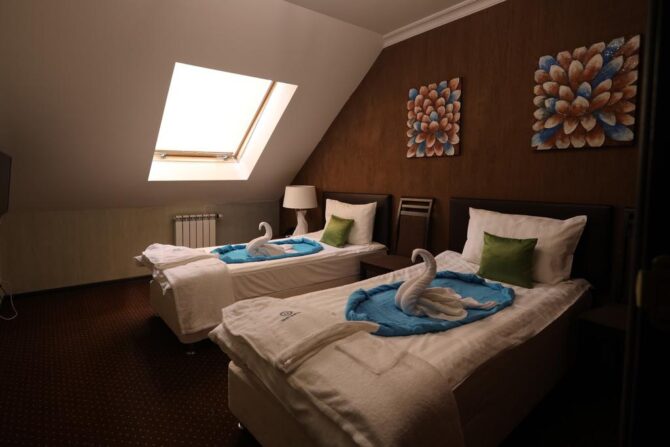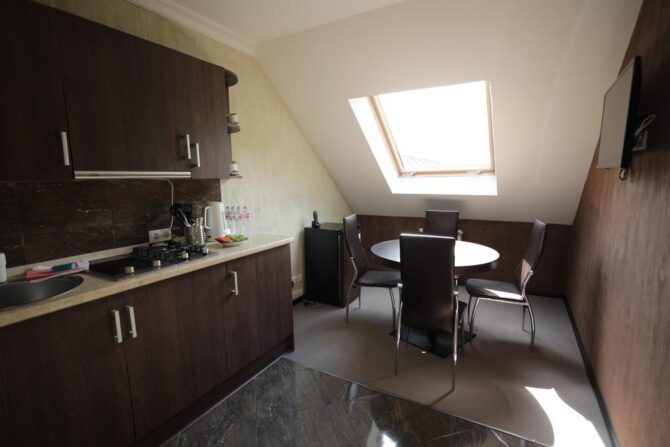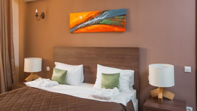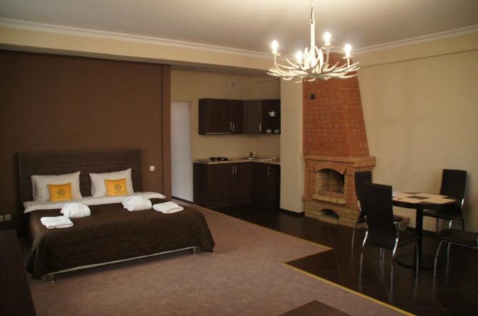 - Двухкомнатные апартаменты – подготовлены 4 основных спальных места. Предусмотрены кухня, рабочая зона. Номер вполне подойдет семье с двумя детьми или дружной кампании.
