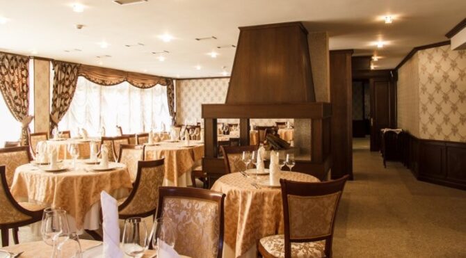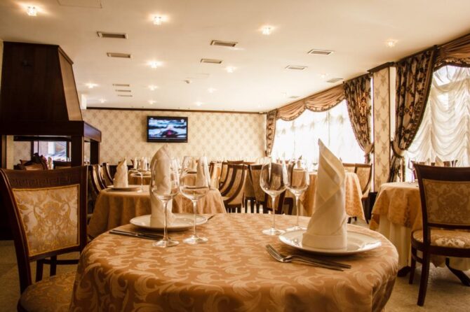 Ресторан «Горная резиденция» небольшой, всего на 40 посадочных мест. Утром здесь накрывается завтрак, затем кухня работает по меню. Шеф-повар предлагает европейскую кухню, в том числе несколько видов паст, блюда, приготовленные на мангале (шашлыки, стейки, овощи), десерты (штрудель, чизкейк, сорбет, мороженое). В баре представлен выбор кубанских, абхазских, грузинских и итальянских вин, крепких спиртных и безалкогольных напитков. Бармен готовит авторские лимонады с малиной, тархуном, черной смородиной и имбирем. Обеденный зал ресторана очень уютный и комфортный. Здесь можно приятно провести вечер за вкусным ужином. Средний чек составит приблизительно полторы тысячи рублей.
