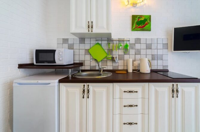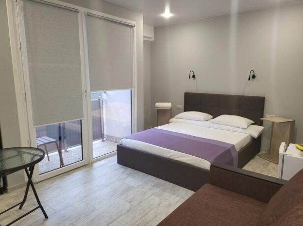 В 500 метрах от популярного пляжа «Мандарин» находится мини-отель «Атлас». В номерном фонде – 7 благоустроенных квартир с балконами и без. Апартаменты без балкона расположены на 1-м этаже. Это двухкомнатный благоустроенный номер с отдельной спальней, встроенным кухонным уголком и спальными местами, рассчитанными на 4-х гостей. Здесь любят останавливаться семьи с маленькими детьми. Для маленьких гостей подготовлены стульчик для кормления и кроватка-манеж.