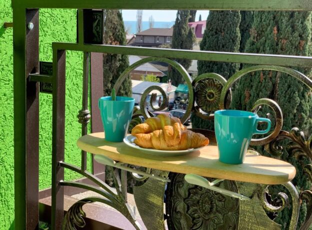 Этот вид жилья привлекает компании друзей. Они могут сразу снять несколько номеров, а свободное время проводить на благоустроенном дворе. Хозяева позаботились об отдыхе гостей на свежем воздухе, установили для них шезлонги на террасе, садовую мебель. Возле гостевого дома находятся теннисный корт, ночной клуб, СПА-центр, парк аттракционов, прокат велосипедов, кафе, рестораны, магазины. В паре шагов открыт ресторан высокой «сочинской» кухни «Фабрика вкуса». Каждый день здесь накрывают завтраки, обслуживают по меню, в том числе детском, подают массу интересных напитков, предусмотренных барной картой. Расстояние от дома до моря составляет 210 м.