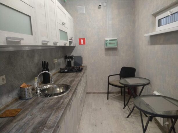 Хозяйка квартиры имеет опыт приема иностранных гостей. Она свободно владеет немецким и английским языками. Всегда рада семейным парам с детьми. Для маленьких постояльцев приготовлены стульчик для кормления и горшок. Мама в любой момент может приготовить для своих домочадцев любимый завтрак, воспользовавшись тостером, туркой для кофе, плитой. Фрукты, овощи и напитки можно разместить в большом холодильнике.