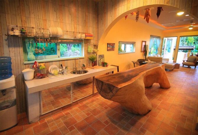 Также в распоряжении клиентов кухня с плитой, холодильником и столовая. Душевые укомплектованы феном и туалетно-косметическими наборами. Часть домов имеют бассейны. Для молодожёнов и семей предусмотрены специальные фешенебельные номера. Кроме этого, посетителям по желанию предоставляется мотоцикл или напрокат автомобиль. Недоплачивая, постояльцы могут воспользоваться: