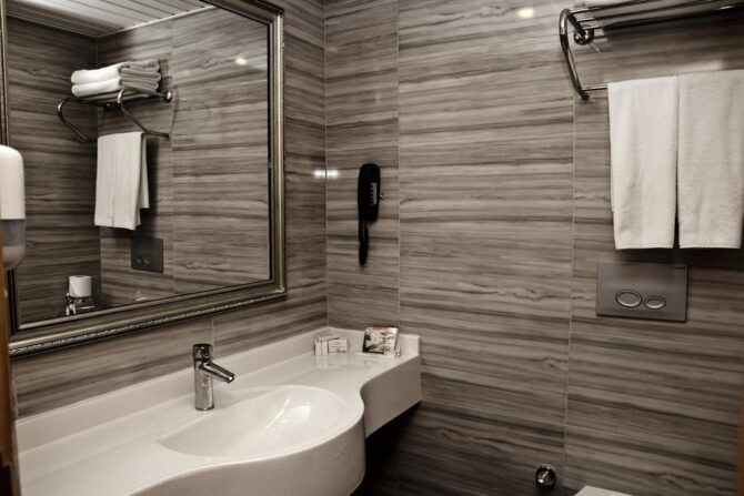Гигиенические наборы для каждого человека периодически пополняются. Ежедневно проводится уборка помещений, смена белья – три раза в неделю. Смена полотенец происходит по запросу, для этого нужно просто положить его на пол. Для детей по запросу останавливается отдельная кроватка или оборудуют спальное место из диванчика. Есть специальные номера для людей с ограниченными возможностями.