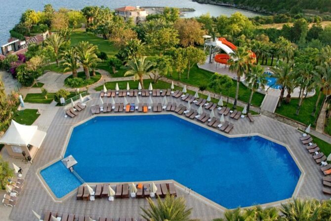 Екатерина, Югорск: «Отдыхали здесь в июле вдвоем с дочкой 6 лет. Как ехали с аэропорта досюда – не заметили. В дороге любовались природой и садами, что время пролетело незаметно. Красивое чистое теплое море, температура была 28 градусов. Всего здесь три бассейна – для больших, для детей и с горками. Полотенца для пляжа меняли три раза в неделю. Отличный СПА-центр. Здесь для отдыха с детьми есть все, дочь в восторге. Очень понравилась анимация, все просто супер! Спасибо огромное сотрудникам отеля за великолепный отдых»!