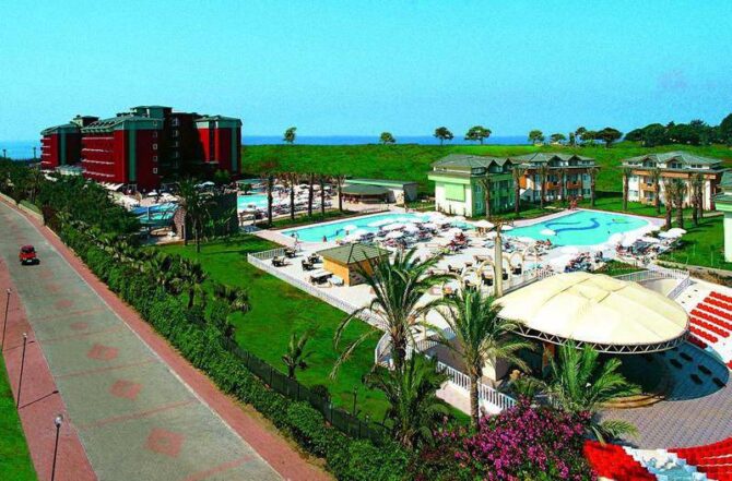 Отель построен в 2003 году и расположен в районе Конаклы и занимает 17 000 м2. Последняя реставрация проводилась в 2015, поэтому ремонт новый. К центру Алании добираться нужно 25 км, а до аэропорта Анталии 110 км. На трансфере вы доедете до места назначения за 2,5 часа, и начнется незабываемое приключение.