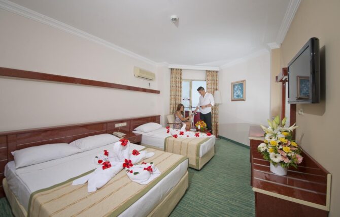 Ангелина, 31 год: «Я в Турции была впервые и до сих пор нахожусь под впечатлением, хоть вернулась месяц назад. Из аэропорта нас доставил трансфер, после чего нас провели на стойку регистрации, покормили, провели до номера, рассказали о расписании и жизни отеля. Удивило повышенное внимание персонала, причем все улыбались, включая горничную и официантов, непроизвольно хотелось дарить улыбку в ответ. Питание отличное, здесь был даже борщ, только колбаса по вкусу совсем на нашу не похожа, лучше ее не есть. Я рекомендую посетить это замечательное место всем своим друзьям и ни разу не пожалела, что приехала именно сюда».
