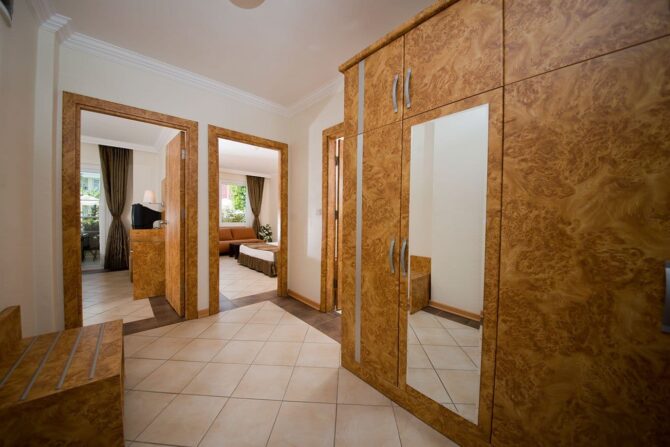 Aydinbey gold dreams 5 состоит из двух главных пятиэтажных корпусов и трехэтажных коттеджей. Всего насчитывается 307 стандартных номеров с видом на море. Также можно выбрать апартаменты из 5 семейных двухэтажных, 3 для людей с ограниченными возможностями. Есть 30 семейных с видом на бассейн, двумя раздельными комнатами и отдельным санузлом.