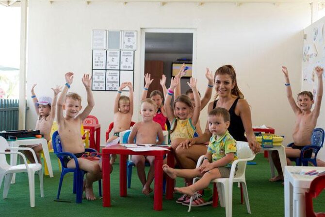 С детьми занимается отдельная группа аниматоров. Если ребенку уже исполнилось 4 года, его можно смело оставить в детской комнате. Он там не будет скучать. С маленькими гостями играют, устраивают конкурсы, учат стихи, песни и делают развивающие подделки. Есть также отдельный бассейн с горками и теплой водой. До ужина дети могут пойти на мини-диско с безалкогольными коктейлями и современной музыкой.