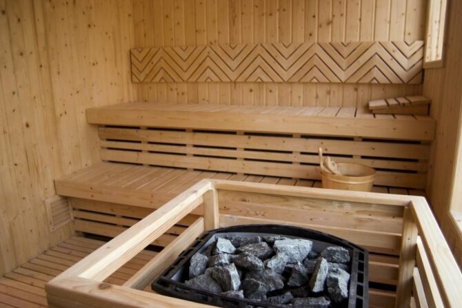 В самой гостинице есть 2 тренажерных зала. Они обставлены различными современными тренажерами. Кондиционеры создают прохладную приятную обстановку в жаркий день. После занятий спортом можно посетить финскую сауну. Она не отличается особым жаром, максимальная температура – 90 градусов. Но как говорится, погреть косточки жара хватит.