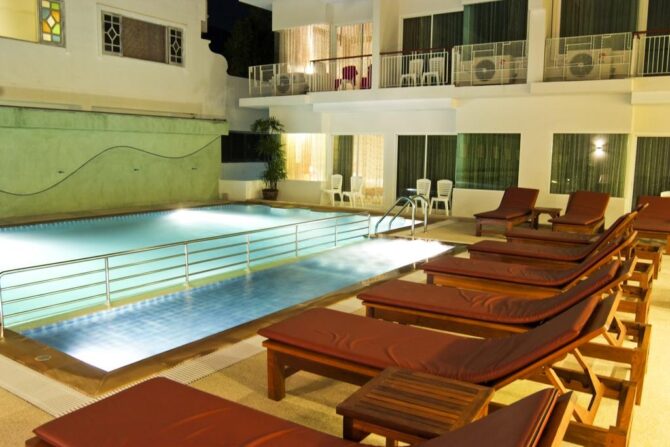 Самая примечательная черта этого пансионата, это, конечно, цена. Номера здесь предоставляются от полутора тысяч рублей. То, что у отеля нет своей территории, вполне компенсируется широким функционалом и наличием трех бассейнов. Более того, особая приближенность к океану делает его заманчивым для туристов.