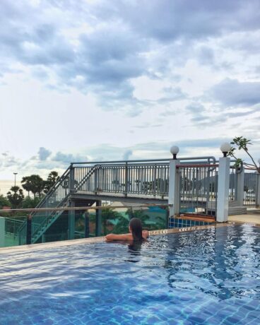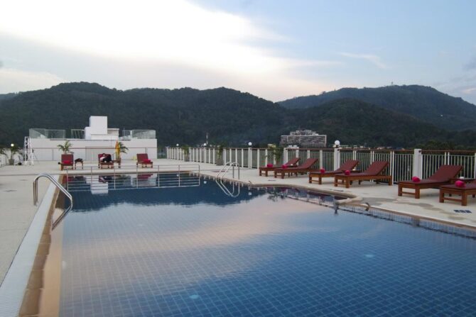 Также вокруг уютно примостились ресторанчики, павильоны, магазинчики и уличные торгаши. Практически впритык стоит здание другой гостиницы, под названием Олд Пхукет. С крыши видны горы, холмы, и даже видно великого Будду.