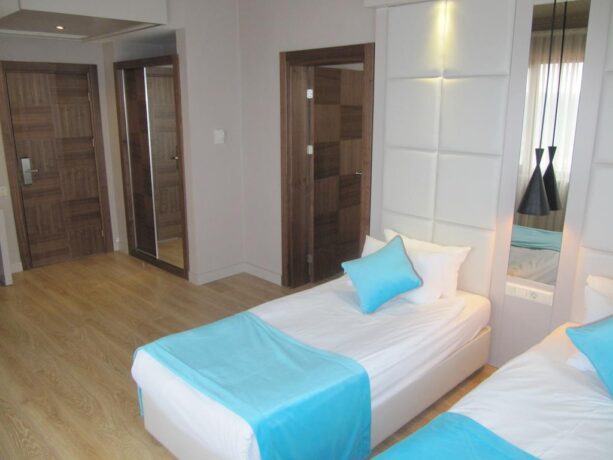 На выбор предлагается «комфорт» и «эконом» класс, а также двухместные и трехместные пенаты. В апартаментах присутствует сейф, телефон и спутниковое телевидение. В базовой комплектации мебель представлена столом, кроватью, креслом и панорамным зеркалом. По просьбе предоставят 1 дополнительную кровать или детскую люльку. Есть все принадлежности для ванных процедур: халаты, полотенца и фен.