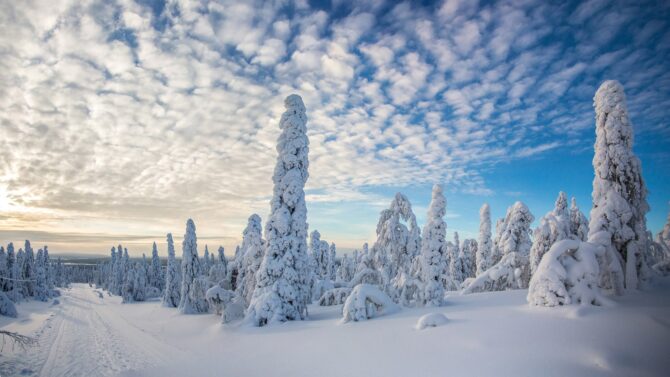 Зима в Финляндии снежная – в северных регионах столбик термометра иногда опускается до -35…-40 °C. Однако благодаря теплому течению Гольфстрима, холода переносятся легко – местный климат благоприятен для катания на горных лыжах, сноуборде. Самым жарким периодом считается июль, когда вода в местных озерах прогревается до +20…+23 градусов, а температура воздуха достигает +25 °C.