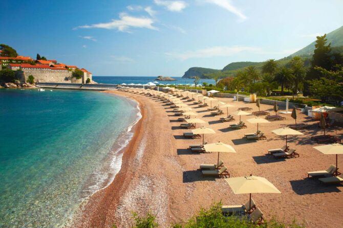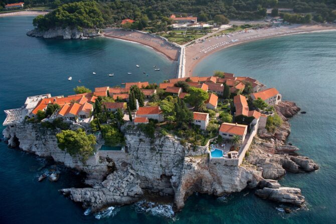 Самый роскошный и фешенебельный Черногорский курорт повидал немало знаменитостей и королевских персон на своем веку – все благодаря причудливому расположению (Святой Стефан представляет собой остров-отель, соединенный небольшим перешейком с сушей).