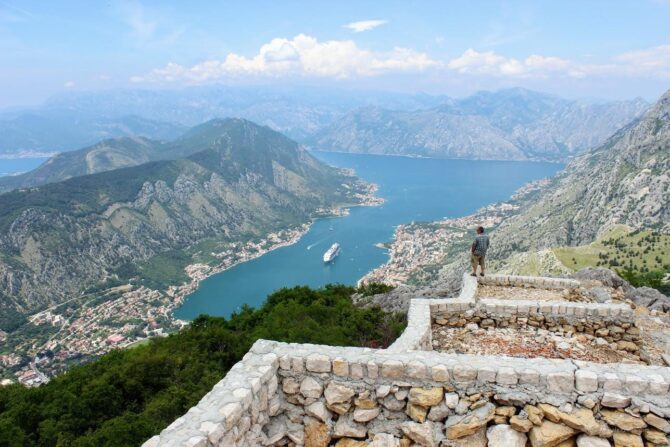- Бока-Которская бухта – живописный залив, куда заходят огромные круизные лайнеры. В городке Котор есть старинная крепость на вершине горы, куда можно попробовать забраться по лестнице.