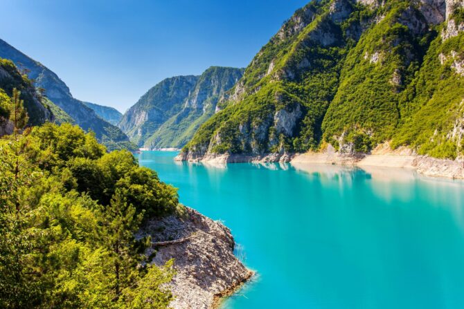 - Скадарское озеро – чистый длинный водоём, в котором цветут красивые кувшинки и лотосы, весьма интересен для посещения: здесь можно арендовать небольшую лодку и долго плавать между гор.