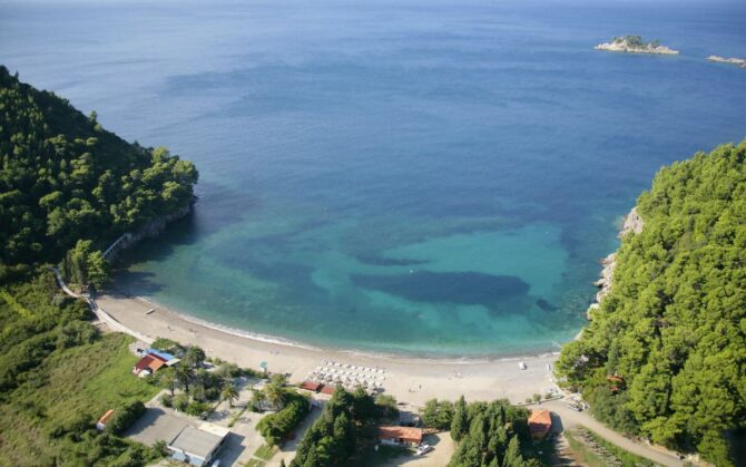 Немало комфортабельных отелей и гостиничных комплексов было открыто в небольшой бухте, располагающейся ближе к Югу от Будвы – местечко славится мелкой красной галькой на пляжах, хвойными лесами около моря и живописными скалистыми берегами.