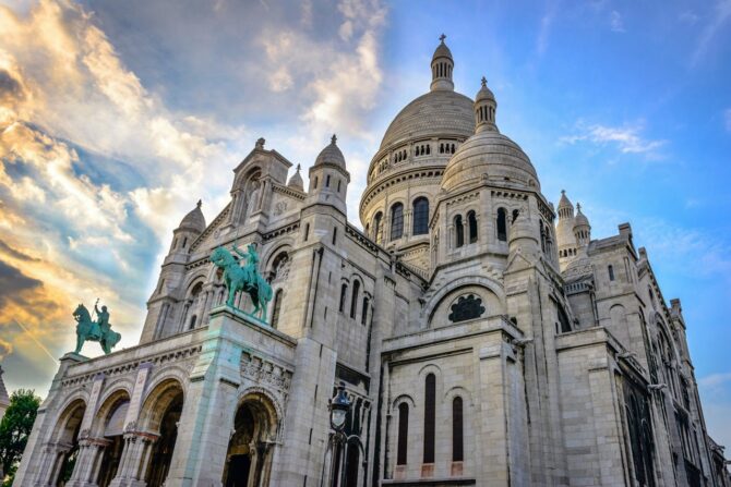 - Базилика Сакре-Кер. Религиозная достопримечательность возвышается на 130 метров над столицей Франции. Вы можете подняться по известной лестнице, чтобы посмотреть на панораму аутентичного района Монмартр.