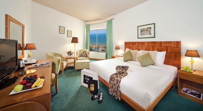 - «Кинг сайз» и «Квинсайз» — помещения с повышенным уровнем комфортности. Здесь могут проживать семьи с маленькими детьми и дружеские компании по 3-4 человека. Из окон открывается шикарный вид на Персидский залив или город.