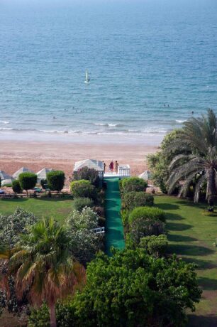 Как уже говорилось ранее, гостиничный комплекс Bin Majid Beach Hotel расположен на первой береговой линии и имеет в своем распоряжении приватную зону побережья. Сотрудники внимательно следят за тем, чтобы на берегу не валялся мусор и водоросли, которые приносит прибой.