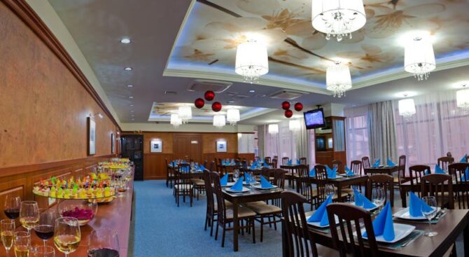 «Бизнес-отель» располагает собственным рестораном, в котором подают европейские блюда, а по утрам сервируют завтрак по типу «шведский стол». Также в отеле есть небольшой лобби-бар, где можно расслабиться после напряженного дня за бокалом вина или виски.Этот отель отвечает всех самым современных требованиям безопасности: так, в нем установлена надежная система противопожарной безопасности, а двери в номера имеют электронные замки.