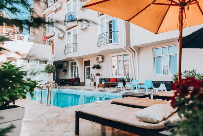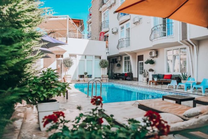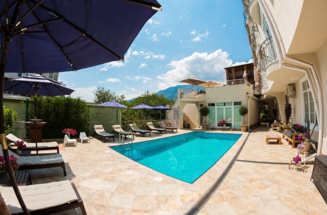 - плавать и купаться в бассейне, оборудованном во внутреннем дворе бутик-отеля «Мускатель»;
