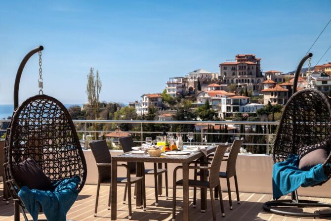 Вряд ли найдутся российские туристы, ни разу не побывавшие на курортах живописного Крыма. Одним из наиболее красивых уголков полуострова считается Гурзуф. Этот компактный поселок, в котором проживает почти 10 тыс. человек, привлекает своими галечными пляжами, чистотой горно-морского воздуха и лабиринтами улочек, напоминающих греческие или кипрские приморские города. В одном из тихих кварталов Гурзуфа расположен «Мускатель» – современный бутик-отель, который гармонично сочетает домашний уют и стильный дизайн просторных номеров.