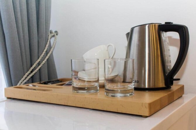 - набор посуды и электрических приборов для приготовления чая и кофе.