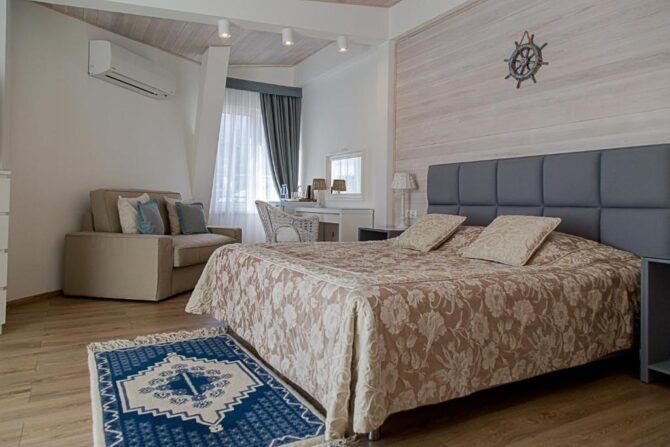 Любая гостиница стремится соответствовать стандартам, существующим в современном гостиничном бизнесе. Бутик-отель «Мускатель» также придерживается этой тенденции и может удовлетворить желания даже самых придирчивых отдыхающих. В гостинице оборудовано 14 просторных стильных номеров 8 категорий и подкатегорий: