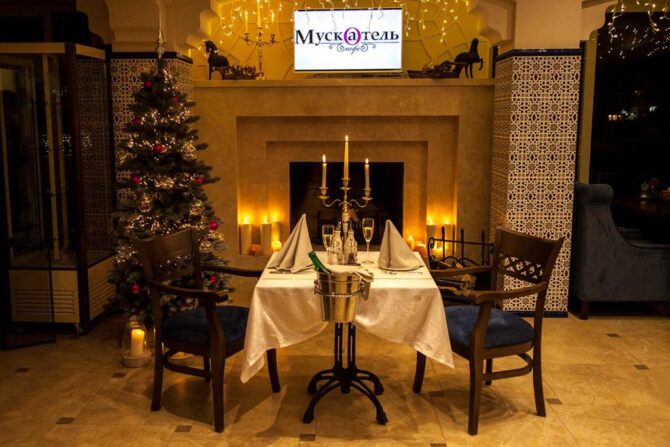 Завтраки, стоимость которых уже включена в проживание, сервируются для гостей бутик-отеля «Мускатель» в ресторане, расположенном на первом этаже. Владельцы определяют его стиль как марокканский. Гастрономическое заведение, позиционирующее себя одновременно как ресторан, бар и итальянская пиццерия, состоит из небольшого светлого зала и уютной террасы, где летними вечерами выступают местные музыканты.