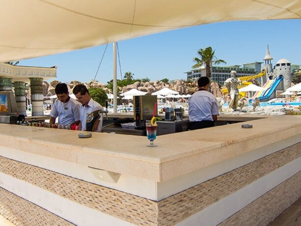 В гостинице Cesars Temple Deluxe Hotel 5* все работает по концепции «все включено ультра». Это означает, что все постояльцы имеют право 24 часа в сутки брать в местных барах алкоголь, прохладительные напитки и легкие закуски в неограниченном количестве. Во многих учреждениях данного типа спиртосодержащая продукция иностранного производства оплачивается отдельно, но здесь подобные правила не практикуются.