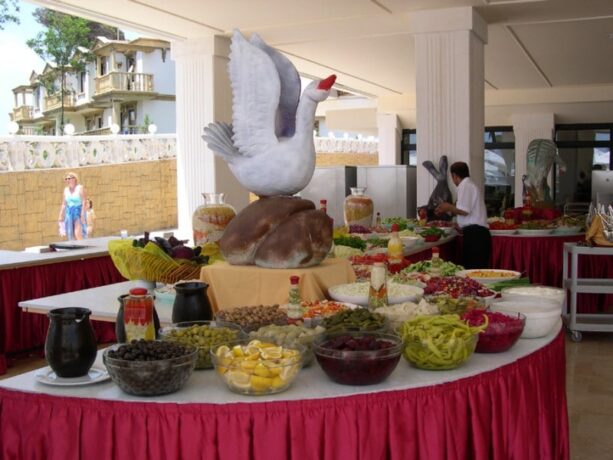 Константин, г. Нижневартовск: «Еда здесь очень вкусная, часто готовят настоящие деликатесы. Если не хотите толпиться в очередях, на завтрак, обед или ужин ходите немного позже установленного времени, но не позднее, чем за полчаса до закрытия на перерыв. В это время уже не найдете мяса и других вкусностей, их разберут ваши соседи. В ресторанах «аля-карт» необходимо бронировать столики заранее. Работают они только до половины одиннадцатого вечера. Самые вкусные коктейли подают в баре на пляже».