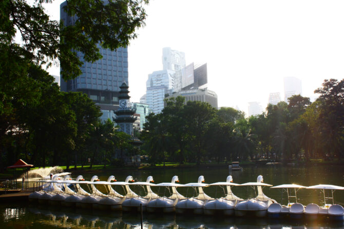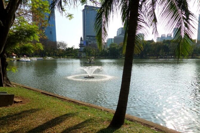 Парк Люмпини – один из старейших в Бангкоке. Его окружают небоскребы, рядом с которыми уютная зеленая территория кажется островком спокойствия. В водоемах, расположенных на его территории, водятся черепахи, вараны и рыба. В этом парке любят прогуливаться семейные пары и пенсионеры. На оборудованных детских площадках играют малыши. В выходные дни – это любимое место горожан для проведения спокойного досуга.