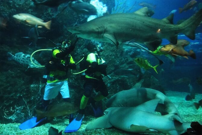 «Очень интересные выставки морских обитателей. Нам понравился океанариум и вообще, как в нем все организованно. Можно поплавать с акулами – говорят, совершенно безопасно, но мы не рискнули. Интересные животные, крупные рыбы, коралловые рифы».